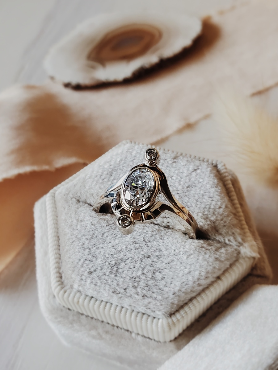 Each ring in the Heavenly Bodies Collection comes in two pieces, symbolizing the many facets of creation working together in harmony. Handcrafted in Missouri, no two rings are ever identical — subtle variations in texture and stone are celebrated as marks of authenticity and human artistry.